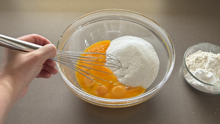 Prepara la crema pasticciera. Per prima cosa sistema una pirofila capiente in freezer o in frigo, quindi porta a bollore il latte e la vaniglia in un pentolino dal fondo spesso. Nel frattempo, sbatti in una ciotola le uova con lo zucchero semolato 9 fino a ottenere un composto chiaro e spumoso.